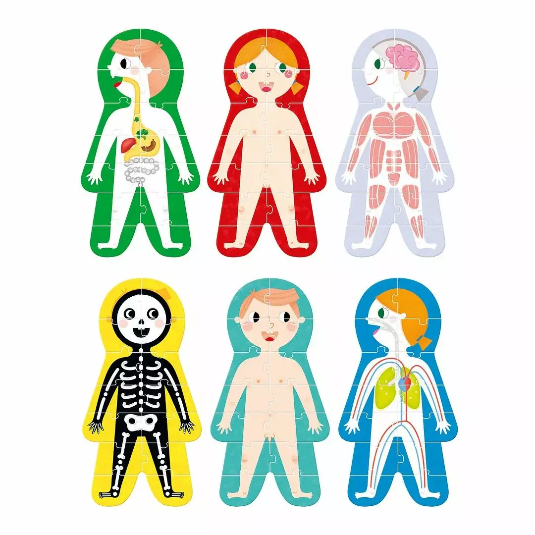 Kuusi jättikokoista lattiapalapeliä tutustuttavat lapset ihmisen elimistöön ja vartaloon hauskalla tavalla! Yhden palapelin koko 47 x 25 cm (14 palaa). Mukana myös opettavainen juliste (48 x 68 cm, englanti).