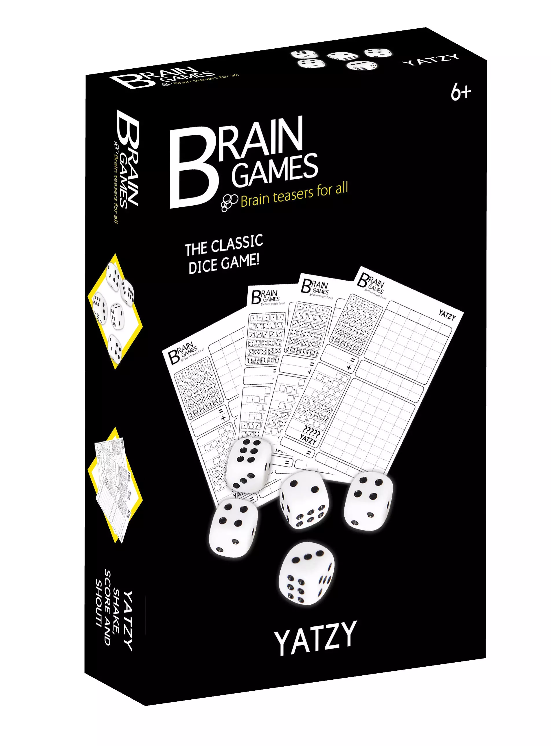 Noppapelien legenda – Yatzy! Kerää parhaat pisteet heittämällä erilaisia silmälukujen yhdistelmiä ja voita peli! Sisältää nopat ja pistelehtiön. Ikäsuositus yli 6-vuotiaille.