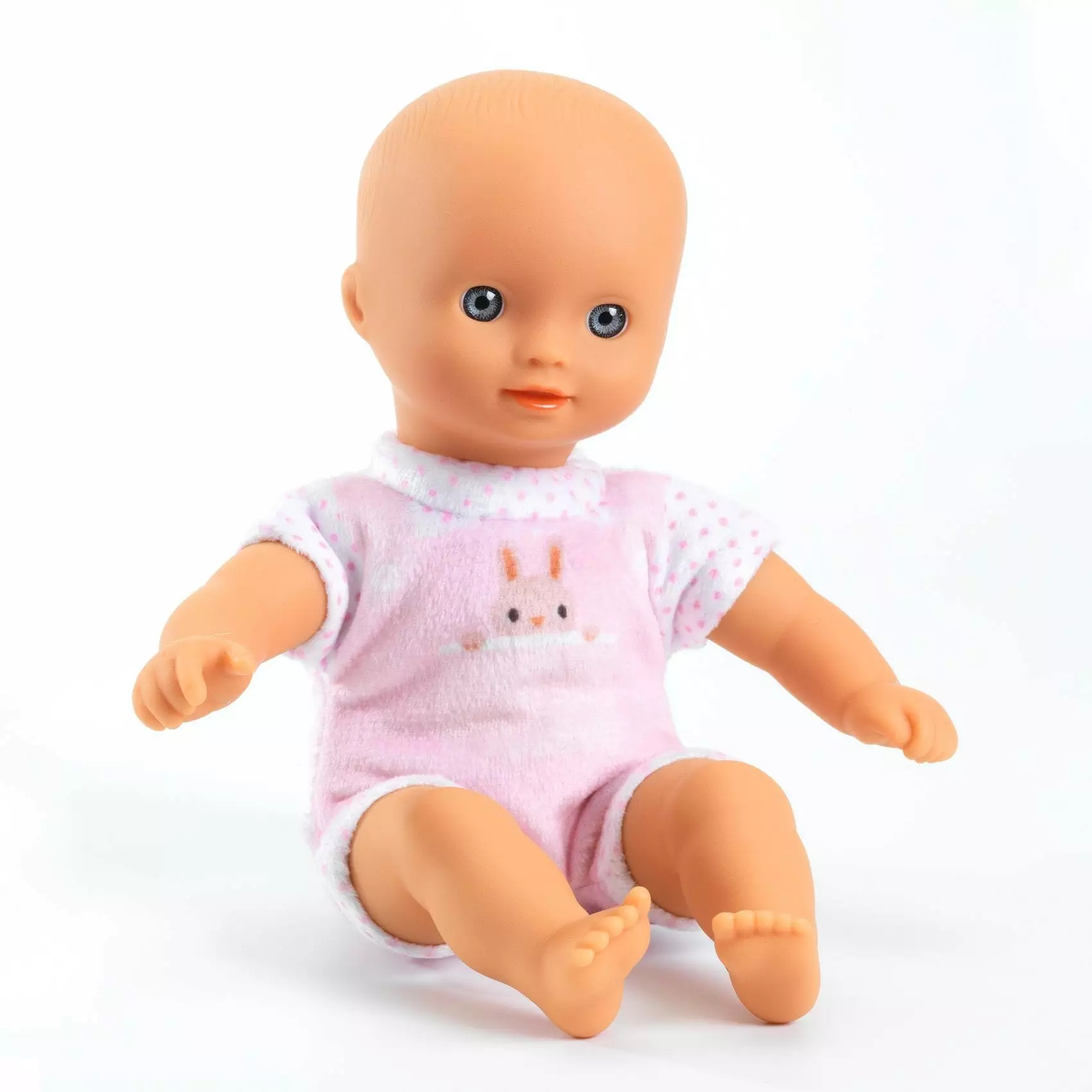 Vauvanukke sopii pieniin käsiin ja sillä on kiva leikkiä ja helppo kuljettaa mukana.