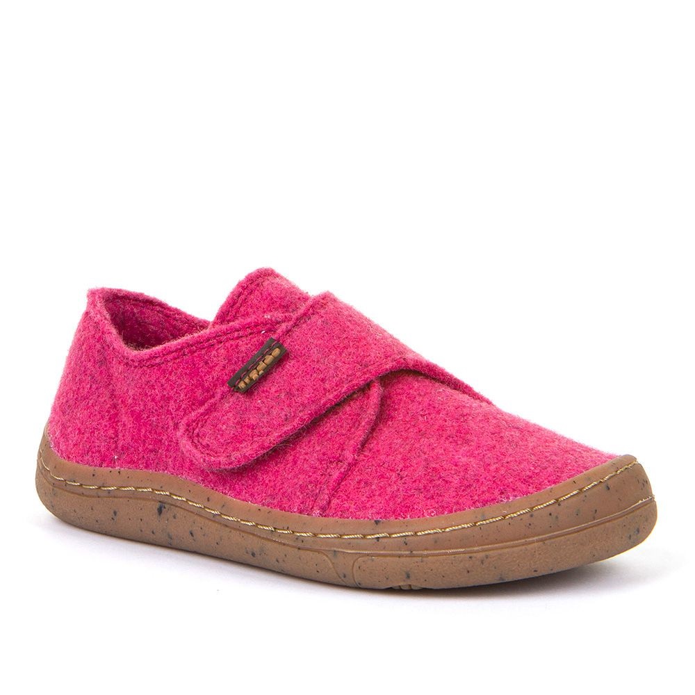 Hengittävä villainen paljasjalkakengät. Tarrakiinnityksen ansiosta lapsen on helppo pukea kengät itse jalkaan.