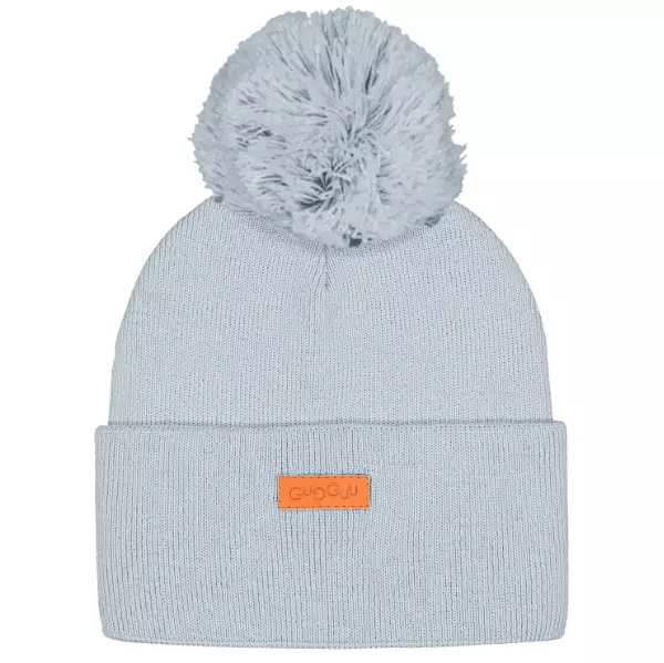 Tämä muhkea merinovillapipo on suunniteltu kylmien päivien luottovarusteeksi. Taitettava resori tuo lisälämpöä korville, ja suuri pörrötupsu kruunaa tyylin. Edessä tekonahkainen Gugguu-logo.