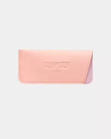 Vaaleanpunainen kotelo Izipizi Junior aurinkolaseille. Kierrätetty PVC.