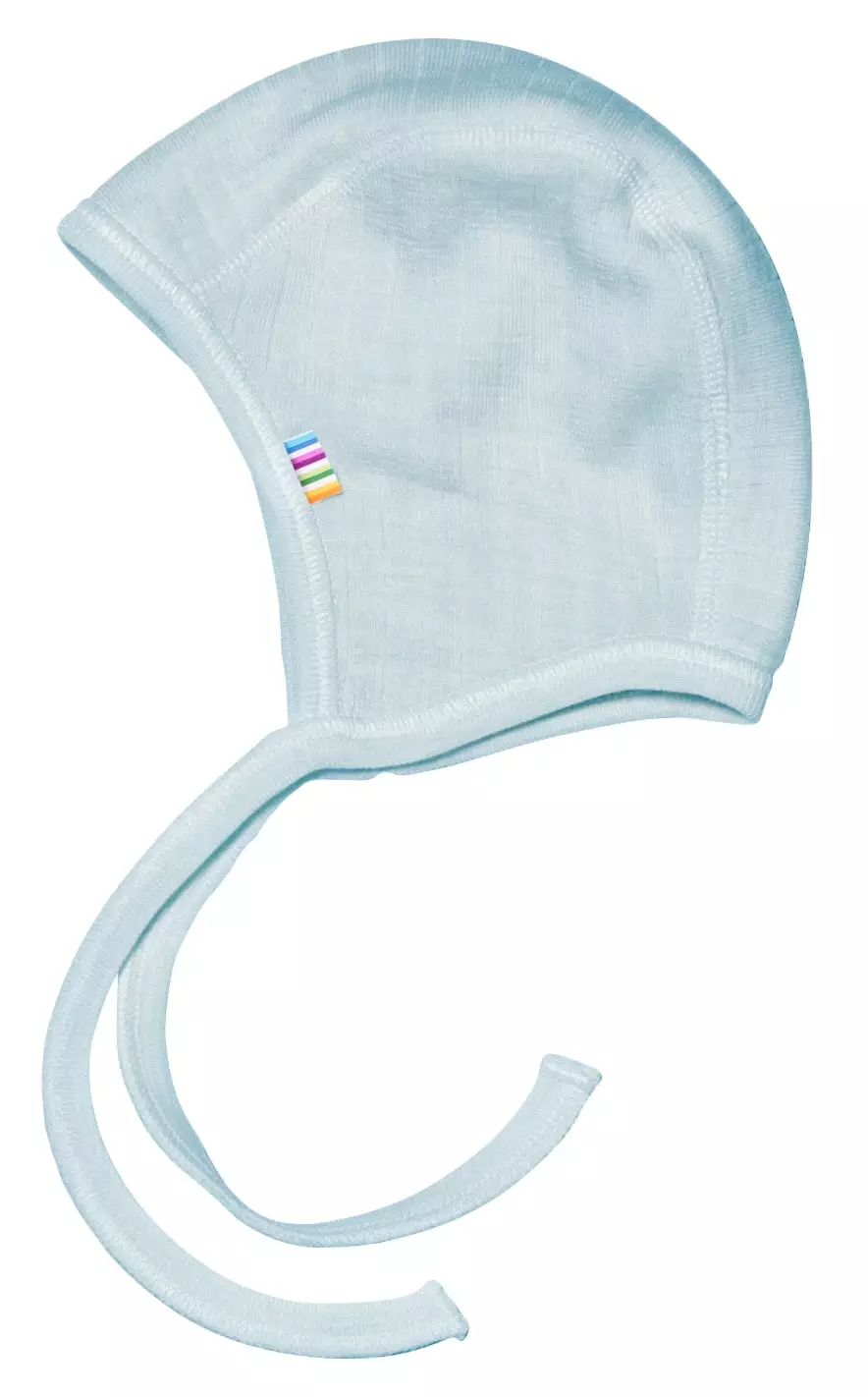 Ihanan pehmeä vauvan myssy, jossa ohutta villaneulosta kaksi kerrosta.