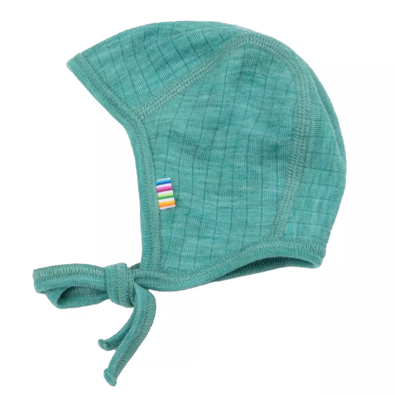 Ihanan pehmeä vauvan myssy, jossa ohutta villaneulosta kaksi kerrosta.