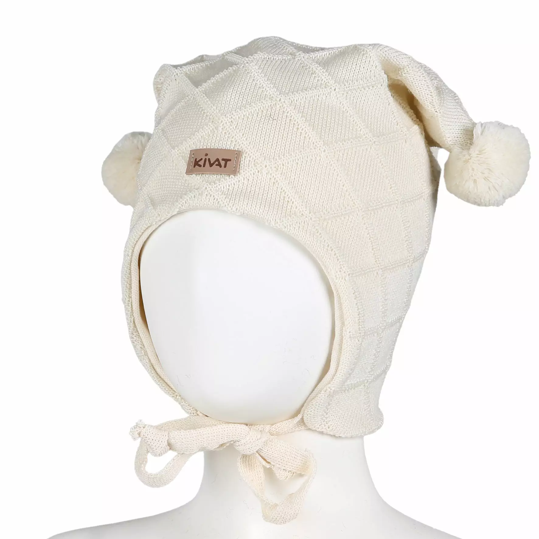 KIVAT-pipo, jossa on kaunis kohopintainen kaapelineulos. Pipossa on tupsut ja leuan alle solmittavat nauhat. Pipon päällinen on 100% villaa. Pipossa on miellyttävän tuntuinen luomupuuvillavuori... Lue lisää