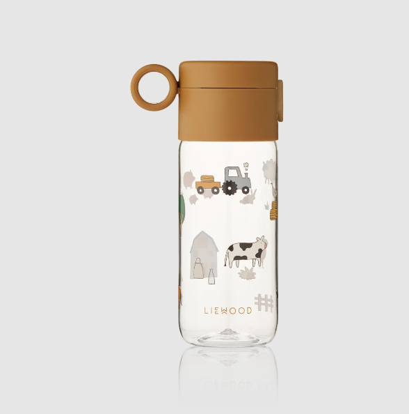 Liewoodin tritaaninen juomapullo. Pullossa silikonista valmistettu suuosa.