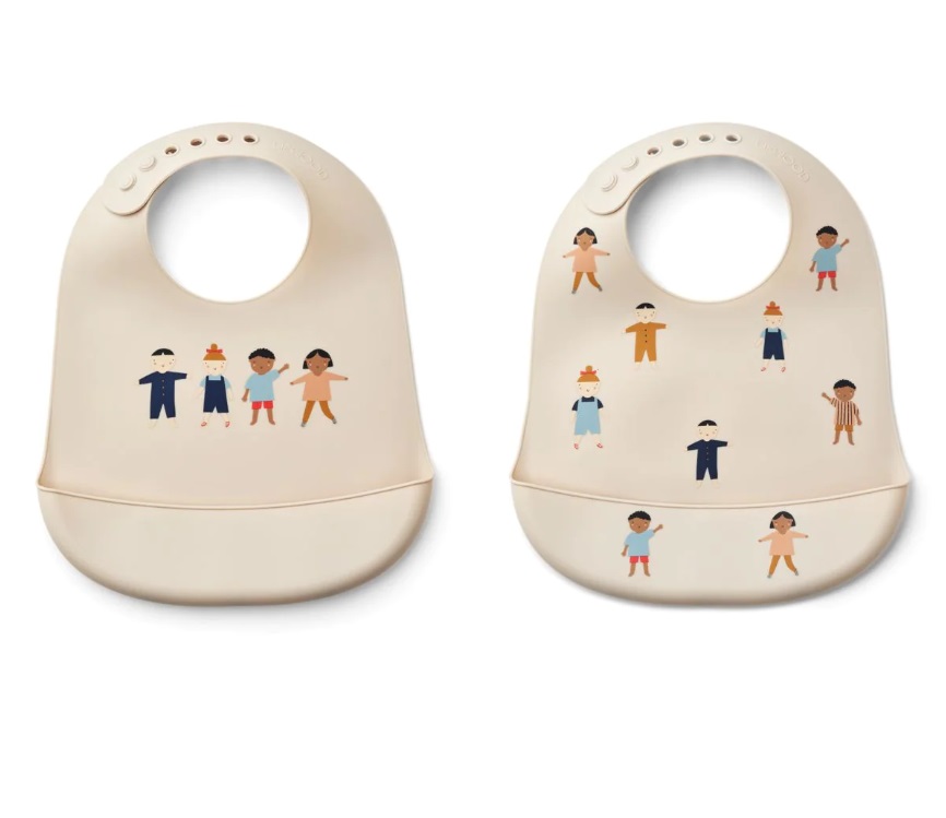 Pakkauksessa kaksi lasten kaukalomallista ruokalappua. 100% silikonia, astianpesukoneen kestävä Leveys 22cm, korkeus 29cm