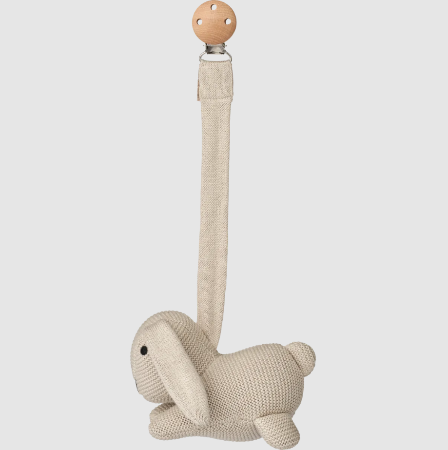 To be attached on pram by the wooden/metallic clips at top of the knitted strap