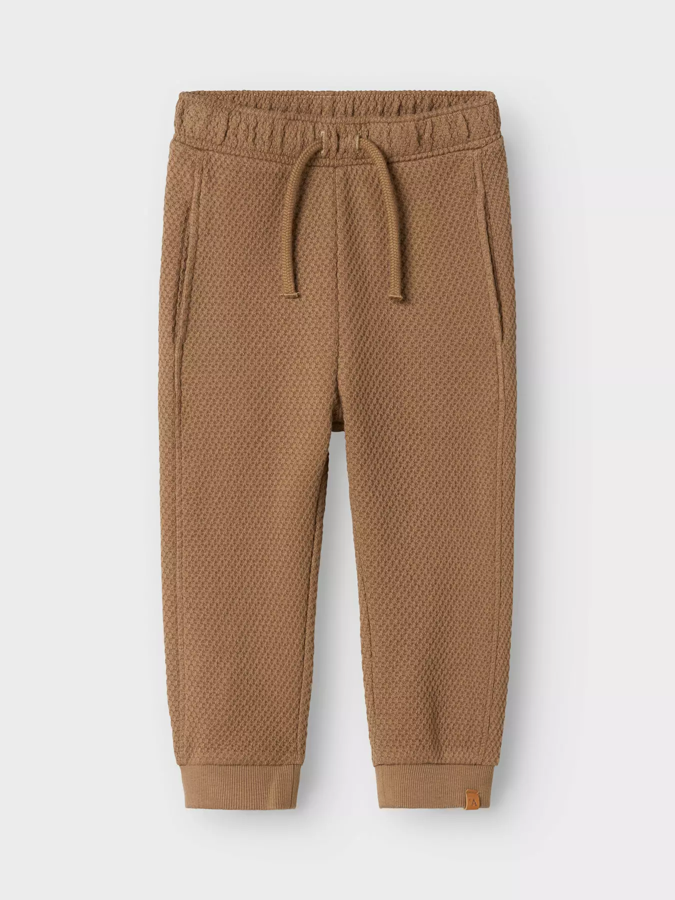 Lil' Atelier ihanat tekstuuripintaiset collegehousut, joissa sivutaskut. Ruskean väriset. Materiaali: luomupuuvilla 100%