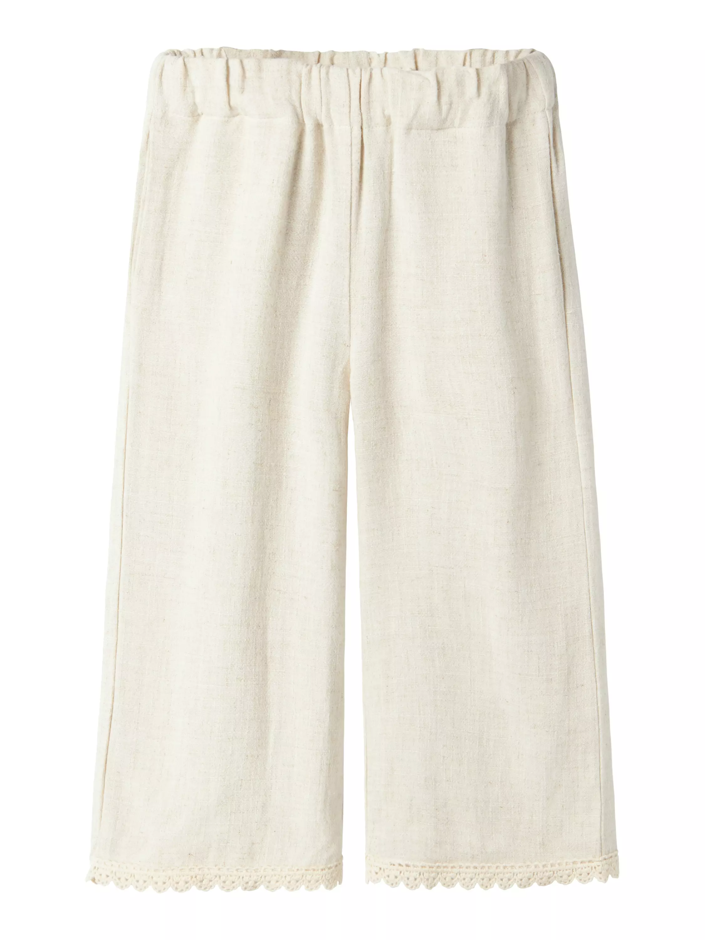 Lil'Atelier lasten pellavahousut. Lahkeensuussa pitsit. 85% viscose, 15% linen