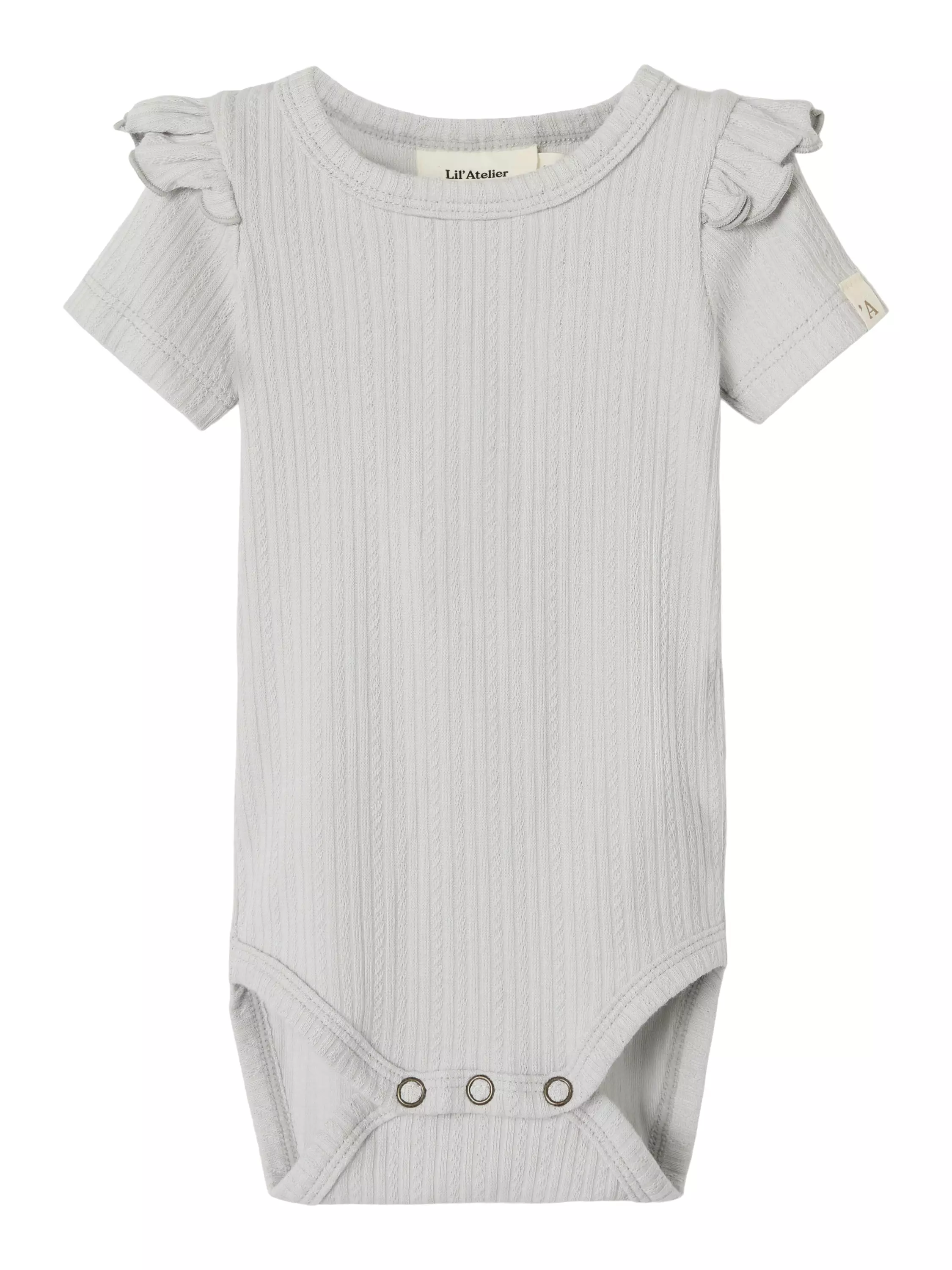 Lil'Atelier vauvan rib body frilloilla. 95% cotton, 5% elastane