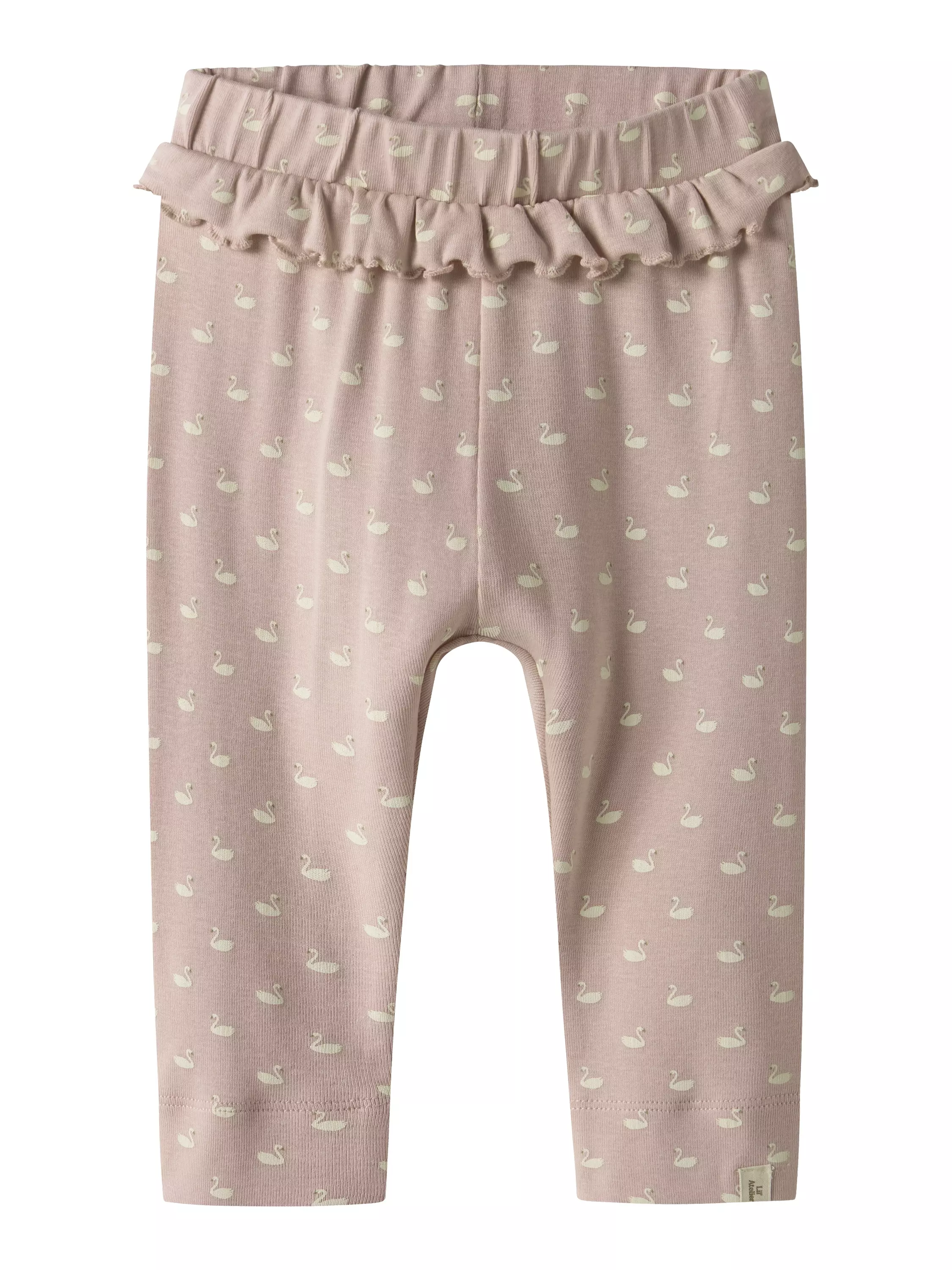 Lil'Atelier vauvan joutsenkuvioidut housut. 57% cotton, 38% lyocell, 5% elastane
