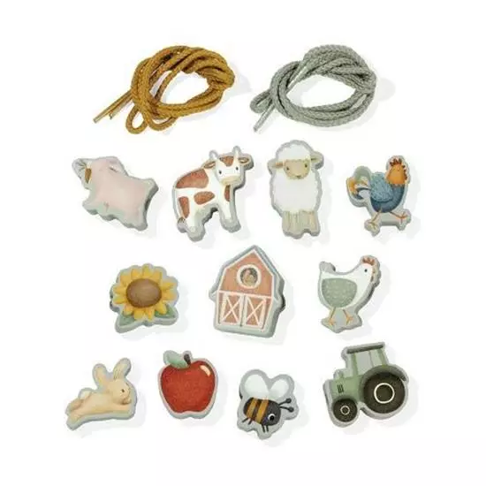 Hienomotoriikkaa kehittävät suloiset puuhelmet. Pakkauksessa 11 puista maatilan elämään liittyvää palaa ja kaksi nyöriä, joita pujotellaan palojen / helmien läpi. Hauskaa puuhaa pienillekin lapsille!