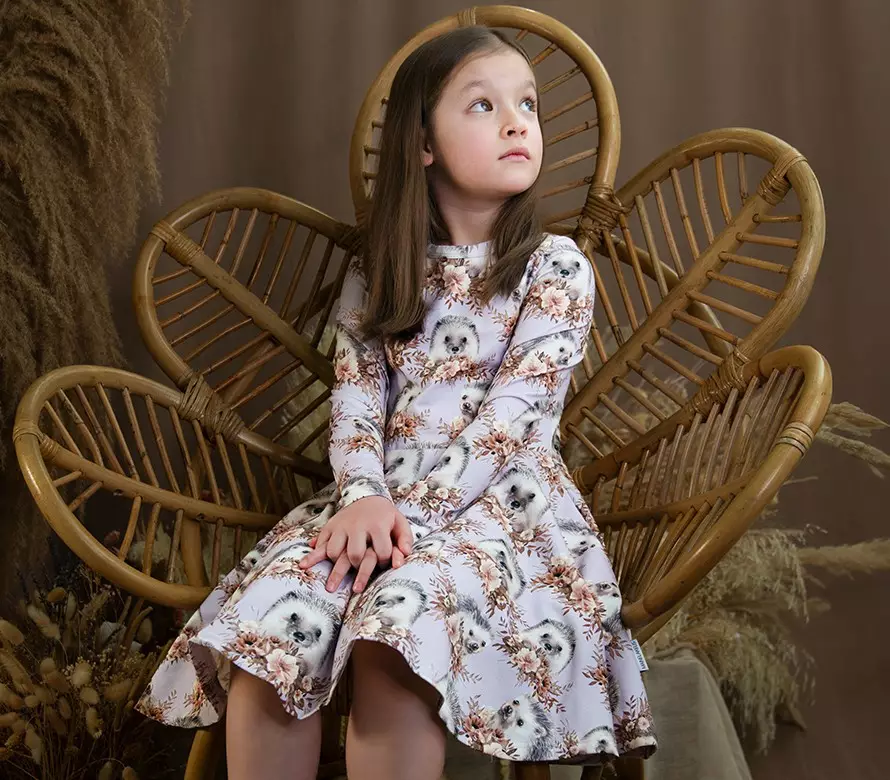 Lasten suloinen kotimainen siili kuvioinen pitkähihainen mekko.