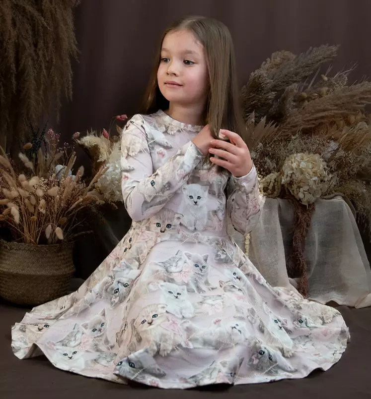 Lasten suloinen kotimainen kissa kuvioinen pitkähihainen mekko. Materiaali: 95% luomupuuvilla, 5% elastaani, Gots-sertifioitu. Pesu 40 asteessa samanväristen kanssa. Ei suositella rumpukuivausta.... Lue lisää