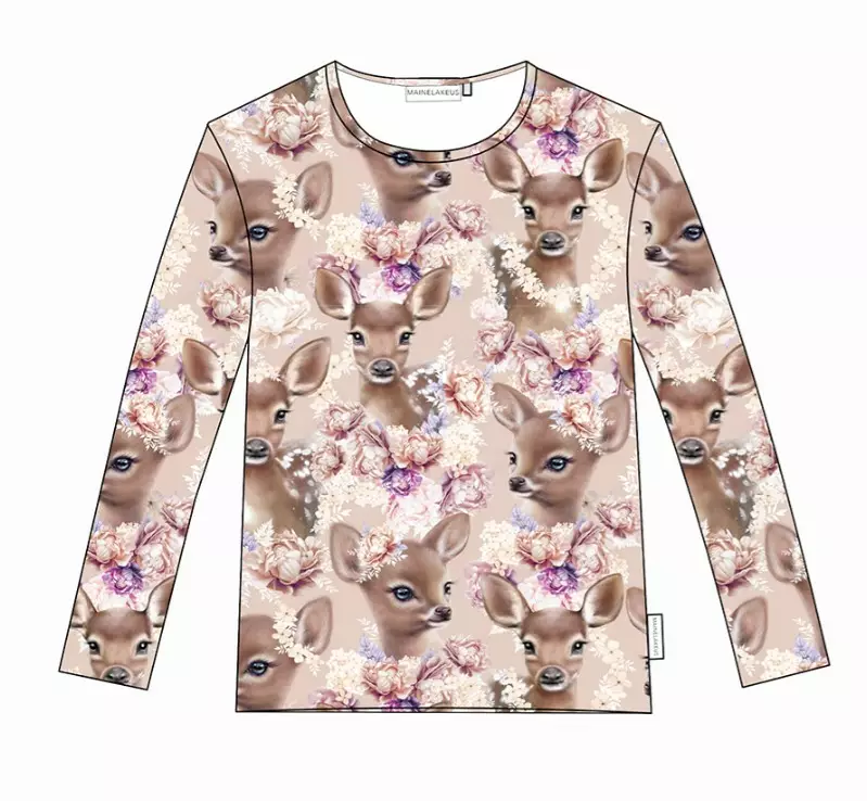 Lasten kotimainen suloinen bambi aiheinen pitkähihainen paita.