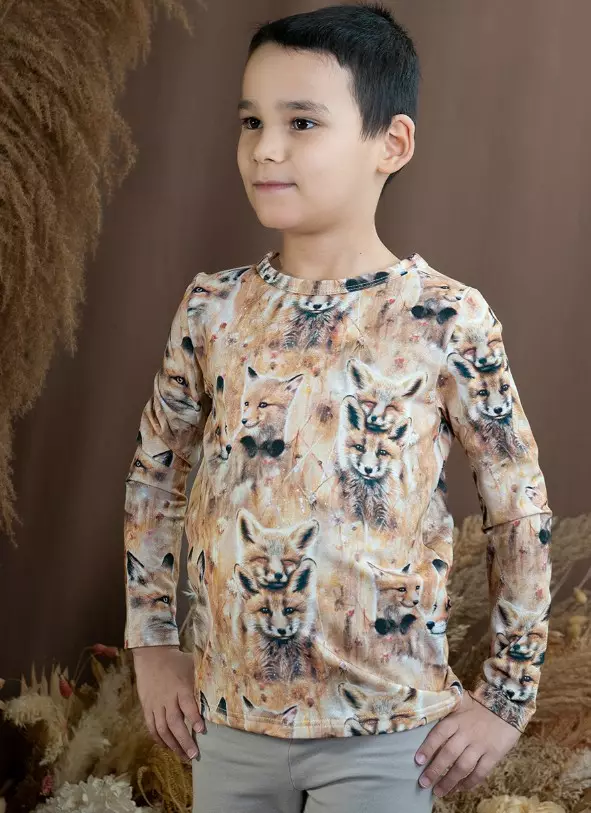 Lasten kotimainen suloinen kettu kuvioinen pitkähihainen paita.