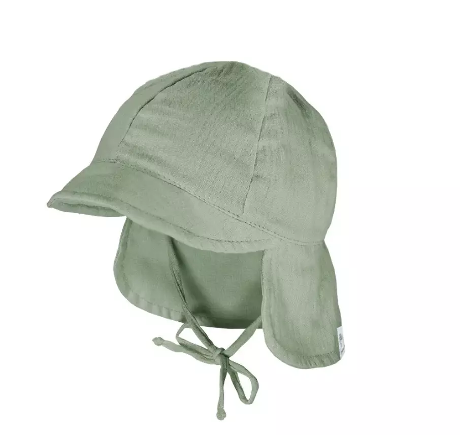 Maximo lasten kesähattu. Hatussa edessä lippa ja takana pitkä lieri. Hatussa nauhat. 100% puuvillaa.