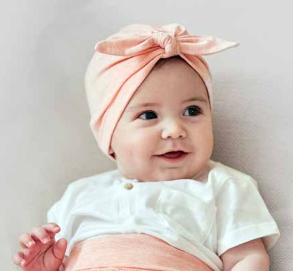Suloinen rusettipipo pienille. 95% puuvilla, 5% elastaani.