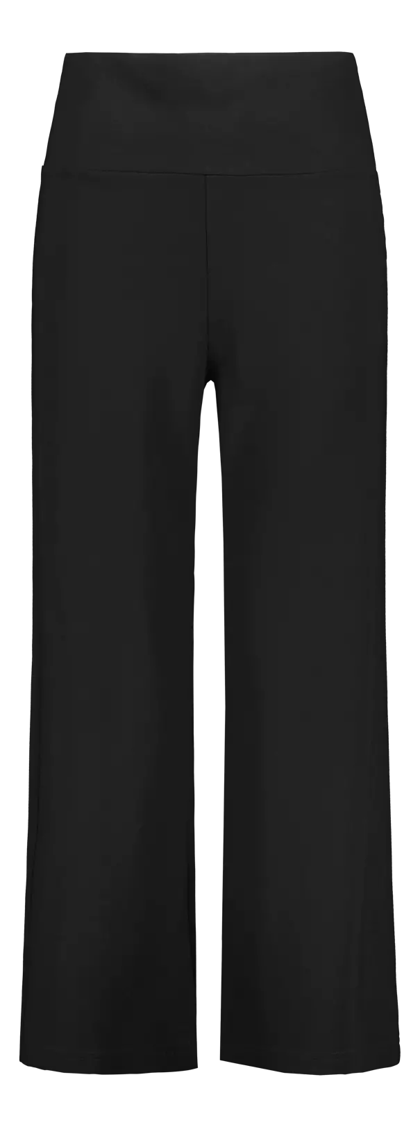 Naisten mustat, leveälahkeiset culottes housut, ovat ajattomat ja helposti erilaisiin asukokonaisuuksiin yhdistettävät. Korkeavyötäröiset culottes-housut on valmistettu napakasta trikoosta joka on materiaalina mukavan joustavaa mutta kestävää. Housuissa ei ole taskuja ja vyötärökaitale on korkea, joten sen voi pitää suorana tai halutessaan kääntää alas.