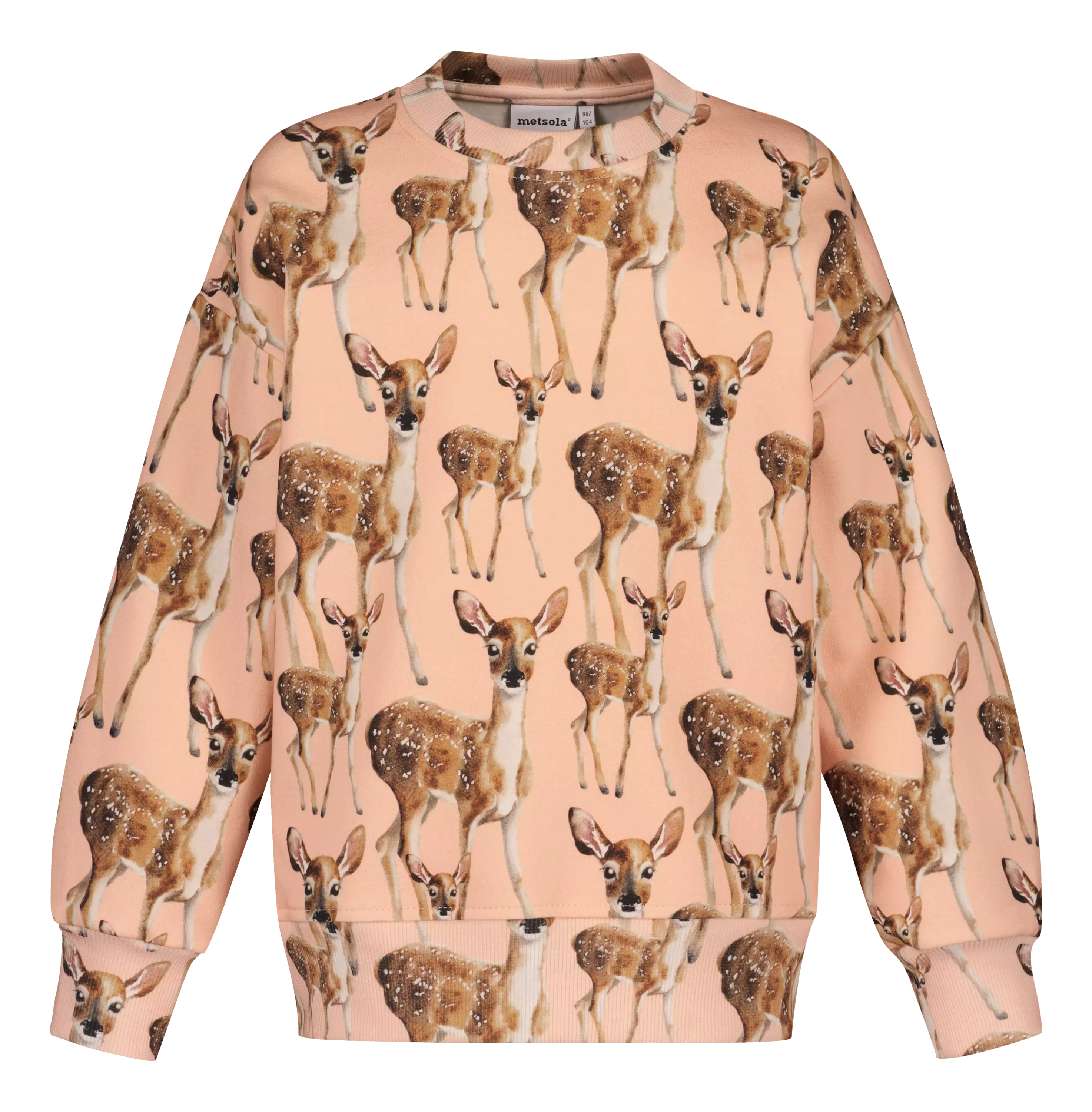 Bambi Oversize Sweater -Collegepaita on rento ja ilmeikäs lasten college, jossa yhdistyvät mukavuus ja hurmaava kuosi. Paidassa nähdään Henna Adelin rakastettu Bambi-kuosi, nyt heleän persikkaisella Peachy-taustalla. Kuosin lempeä ilme tekee siitä helposti yhdisteltävän ja ajattoman.