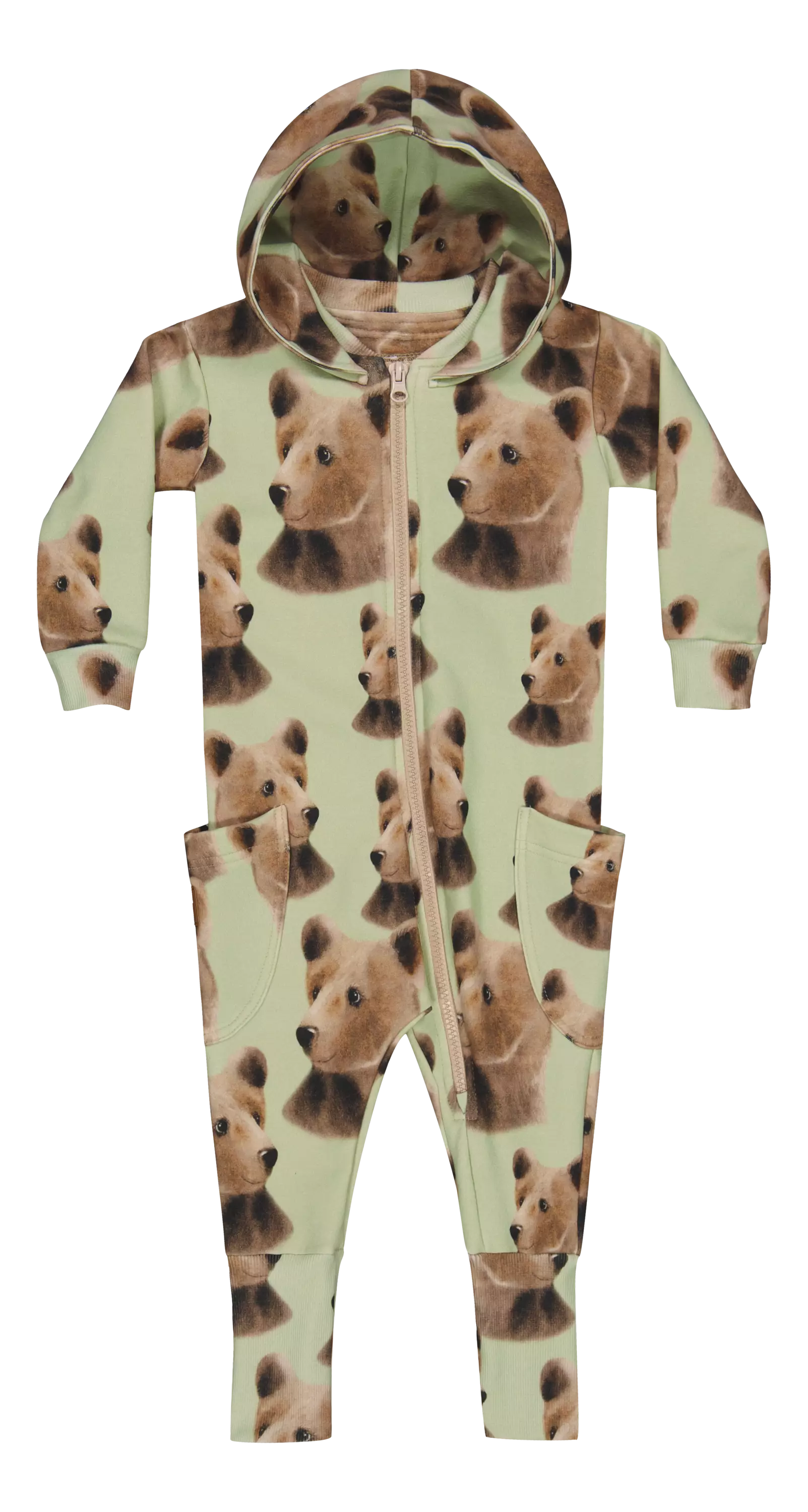 Bear -Jumpsuit on arjen helppo ja hurmaava valinta. Haalarissa nähdään Henna Adelin suunnittelema Bear-kuosi, jossa ovat tutut karhut heleän vihreällä Spring Green -taustalla.