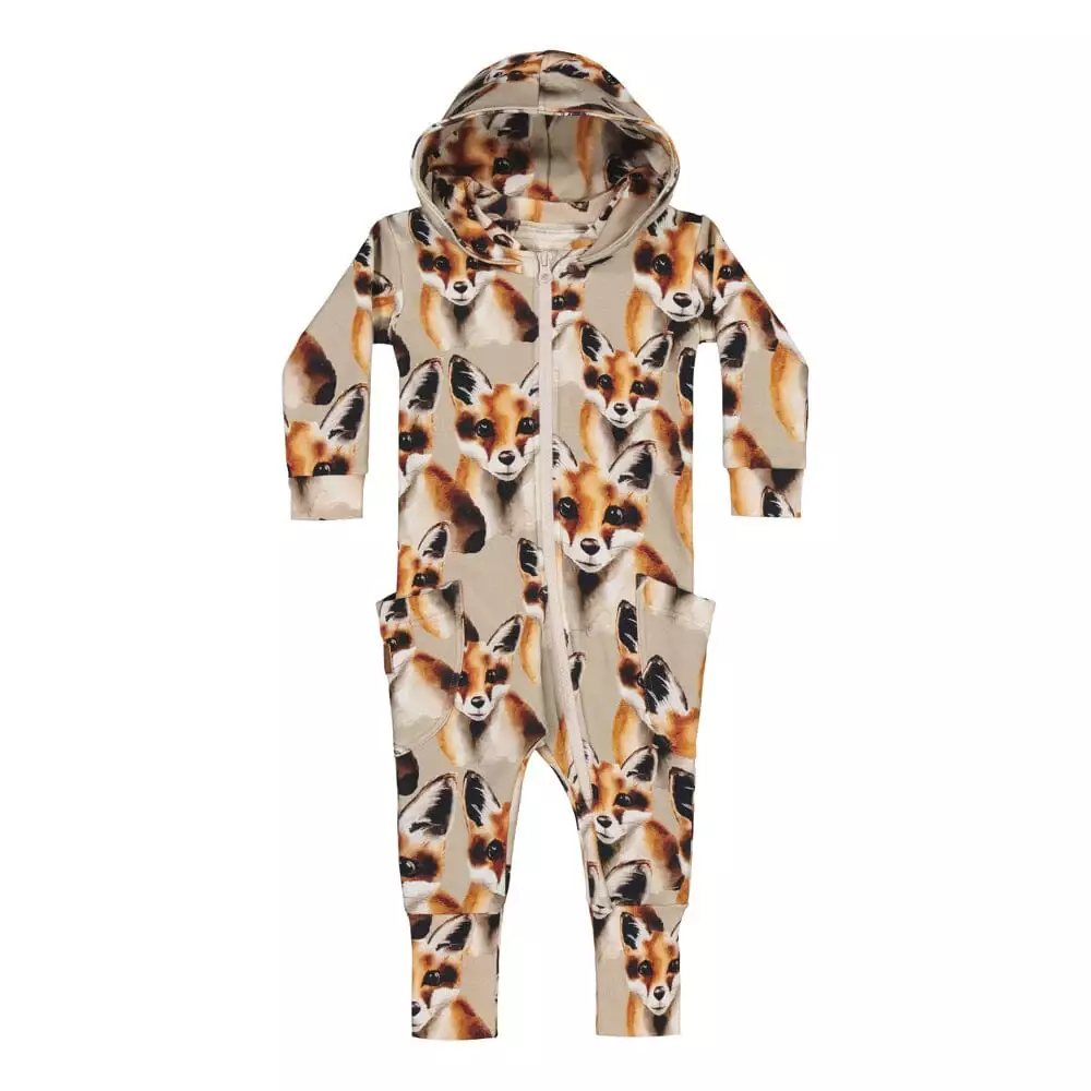 Fox Sesame -vauvojen ja lasten collegehaalari on valmistettu luomupuuvillasta ja sen sisäpinta on harjattua collegea. Materiaali on pehmoinen, joustava ja miellyttävän tuntuinen iholla. Haalarissa on käytännöllinen vetoketjusuljenta. Jumpsuit on suunniteltu erittäin pitkäikäiseksi, sillä reilunmittaiset resorit ja lahkeensuussa pidentävät käyttöikää merkittävästi.
