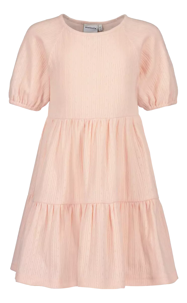 Tämä hurmaava Tiered Dress -kerrosmekko yhdistää pehmeän mukavuuden ja kauniisti laskeutuvan siluetin. Rypytyksin tehty kerrostettu helma tuo mekkoon ihanaa keveyttä ja liikkuvuutta, tehden siitä täydellisen valinnan niin leikkiin kuin erityisiin hetkiin. Tässä lasten mekossa on puhvimaiset lyhyet hihat joiden hihansuut ovat käytännöllisen joustavat.