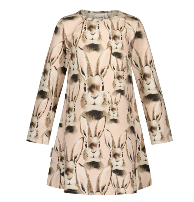 Lasten pitkähihainen Bunny Pink -trikoo mekko on varmistettu puuvillasta. Materiaali on pehmoinen, joustava ja erittäin miellyttävän tuntuinen iholla. Mekko on istuvuudeltaan rennompi ja siinä ei ole vyötäröllä saumaa.