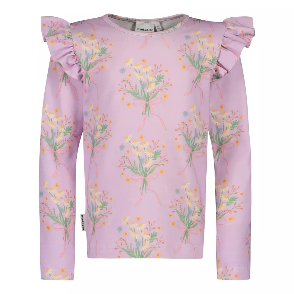 Special Day Frilla -paita on kuin iloinen yllätys keskellä päivää - täynnä väriä, keveyttä ja pientä juhlan tuntua. Paidassa loistaa Veera Grönbergin suunnittelema Special Day -kuosi, jossa värikkäät niittykukat levittäytyvät trendikkään lilalle taustalle. Lopputulos on ilmeikäs, leikkisä ja helposti yhdisteltävä.