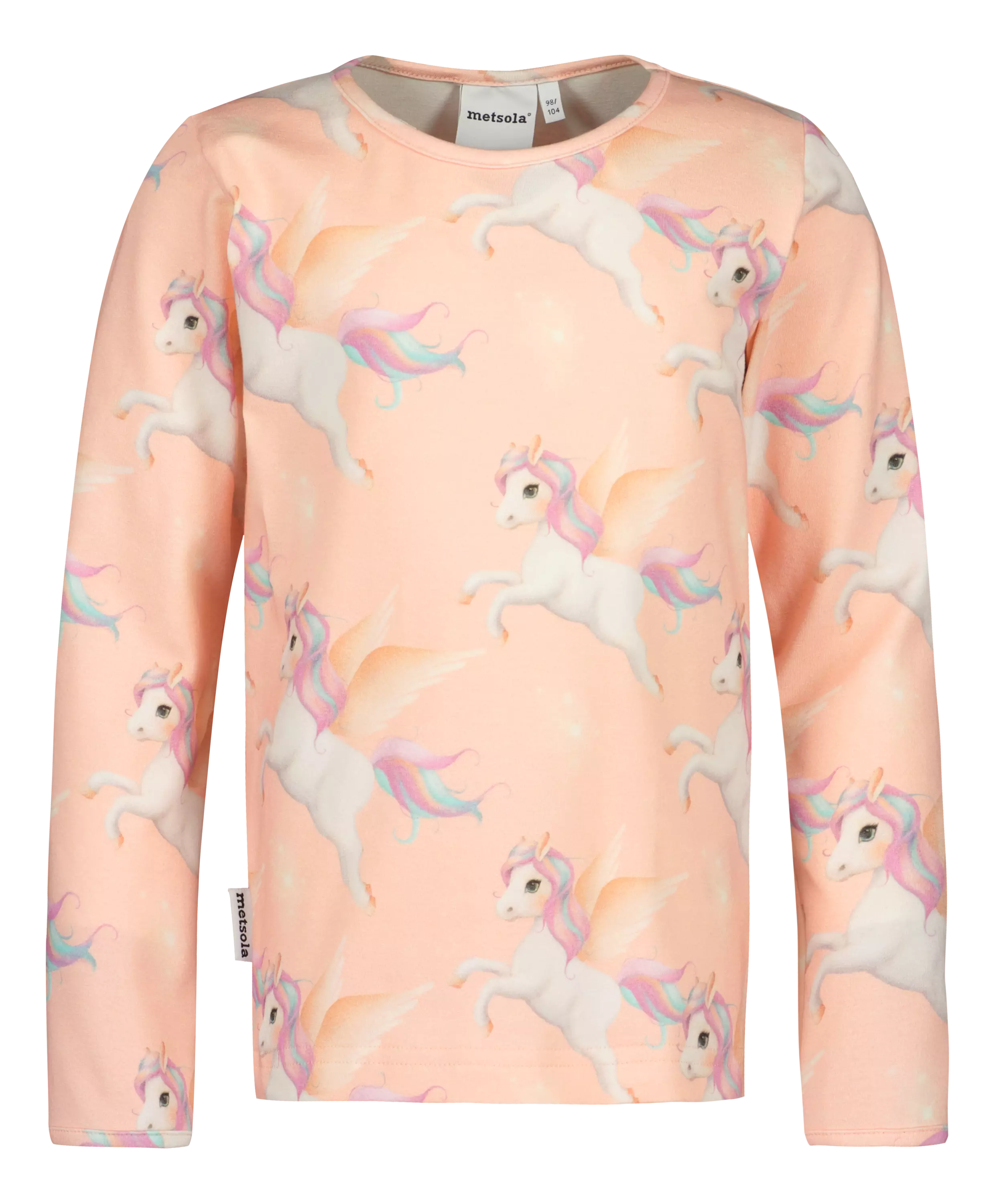 Pastel Pony -kuosin paita hempeän vaaleanpunaisessa Sparkle-sävyssä. Tässä lasten paidassa keijukaisponi leijailee kevyesti tähtipölyn keskellä, tuoden vaatteeseen ripauksen taianomaisuutta ja leikkisyyttä.