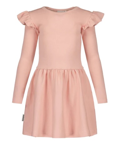 Rib frilla mekko on valmistettu korkealaatuisesta ja kestävästä luomupuuvillasta. Mekossa on runsas helma ja frillat olkapäillä.