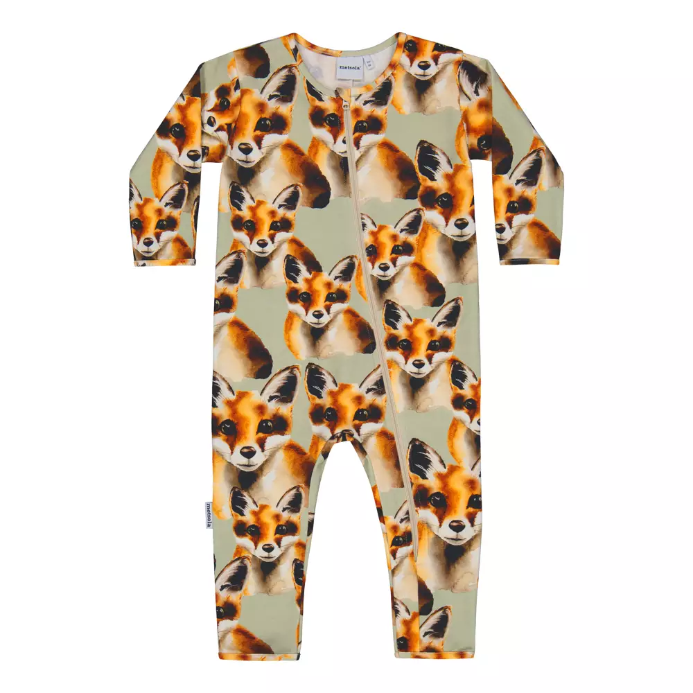 Fox Green -yöpuvussa on lahkeeseen saakka ulottuvan vetoketju, jonka ansiosta yöpuvun pukeminen on helppoa pienellekin lapselle.