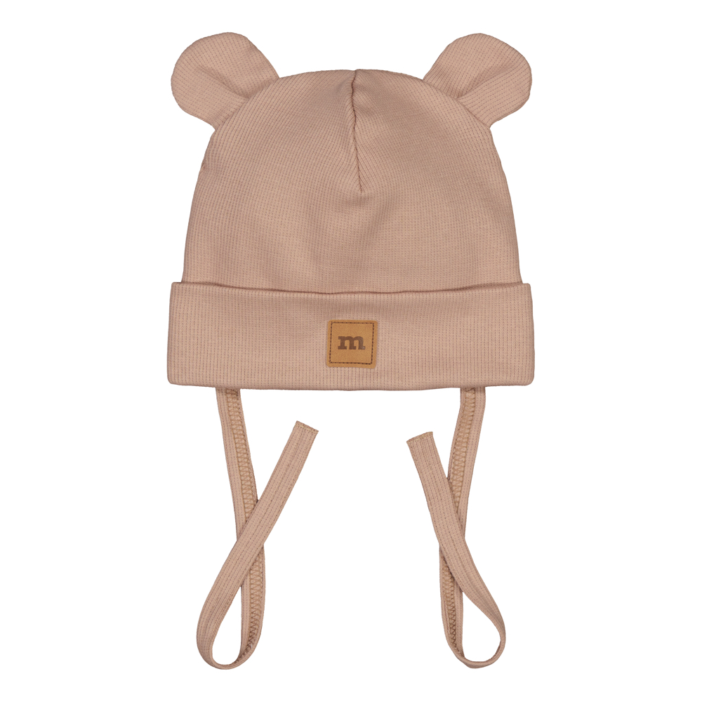 Vauvojen pipoa koristavat suloiset karhunkorvat ja nauhat saavat pipon pysymään pienen käyttäjänsä päässä.