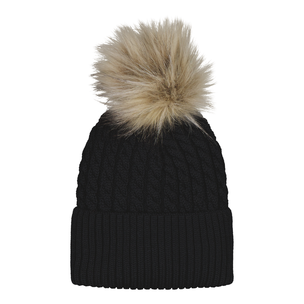 Kotimaisen merinovillapipon pintaa koristaa kaunispalmikkoneulos ja siinä on suuri tekoturkiksesta tehty tupsu. Tämä tupsupipo on valmistettu erittäin laadukkaasta mulesing-vapaasta merinovillasta.