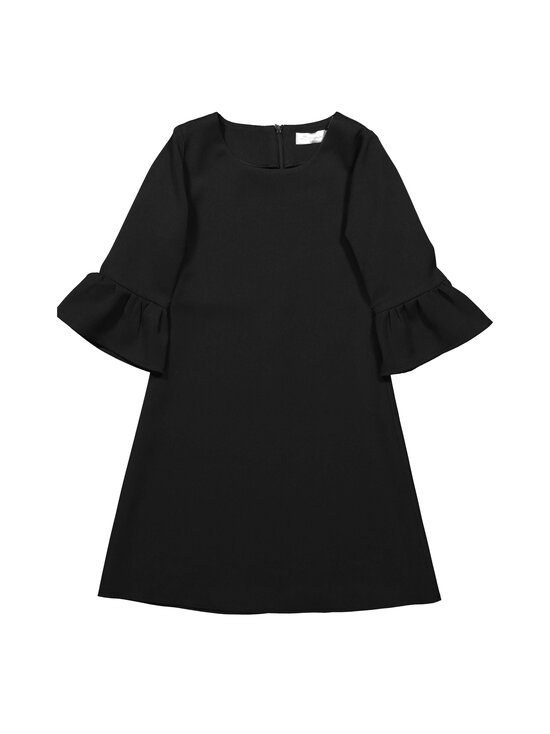 Klassisen tyylikäs yksivärinen mekko ihanilla trumpettihihoilla ja pyöreällä. Mekon selkäpuolella on pukemista helpottava piilovetoketju. 78 % polyesteri, 18 % viskoosi, 4 % elastaani