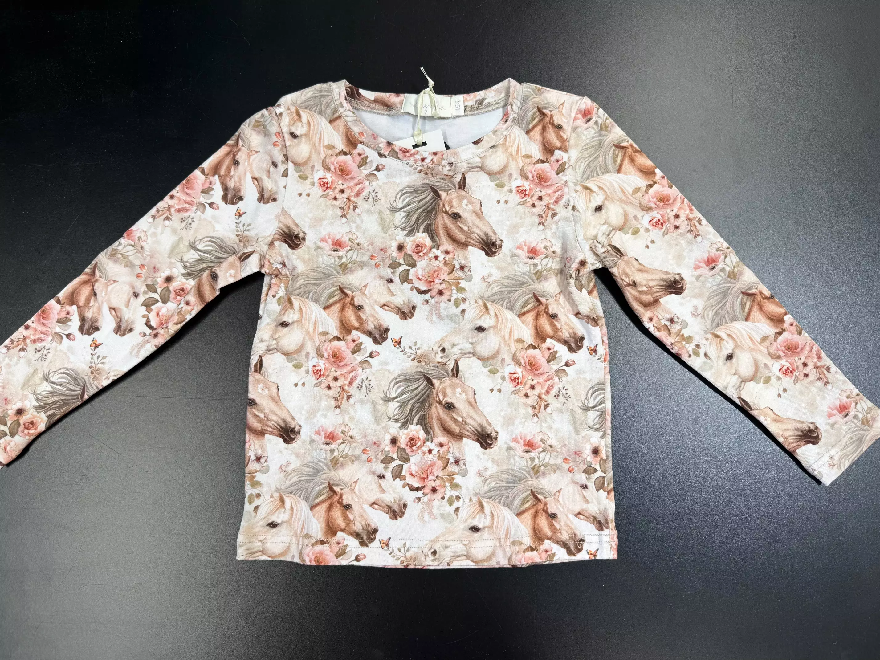 Ihastuttava lasten trikoopaita kauniissa hevoskuosissa.