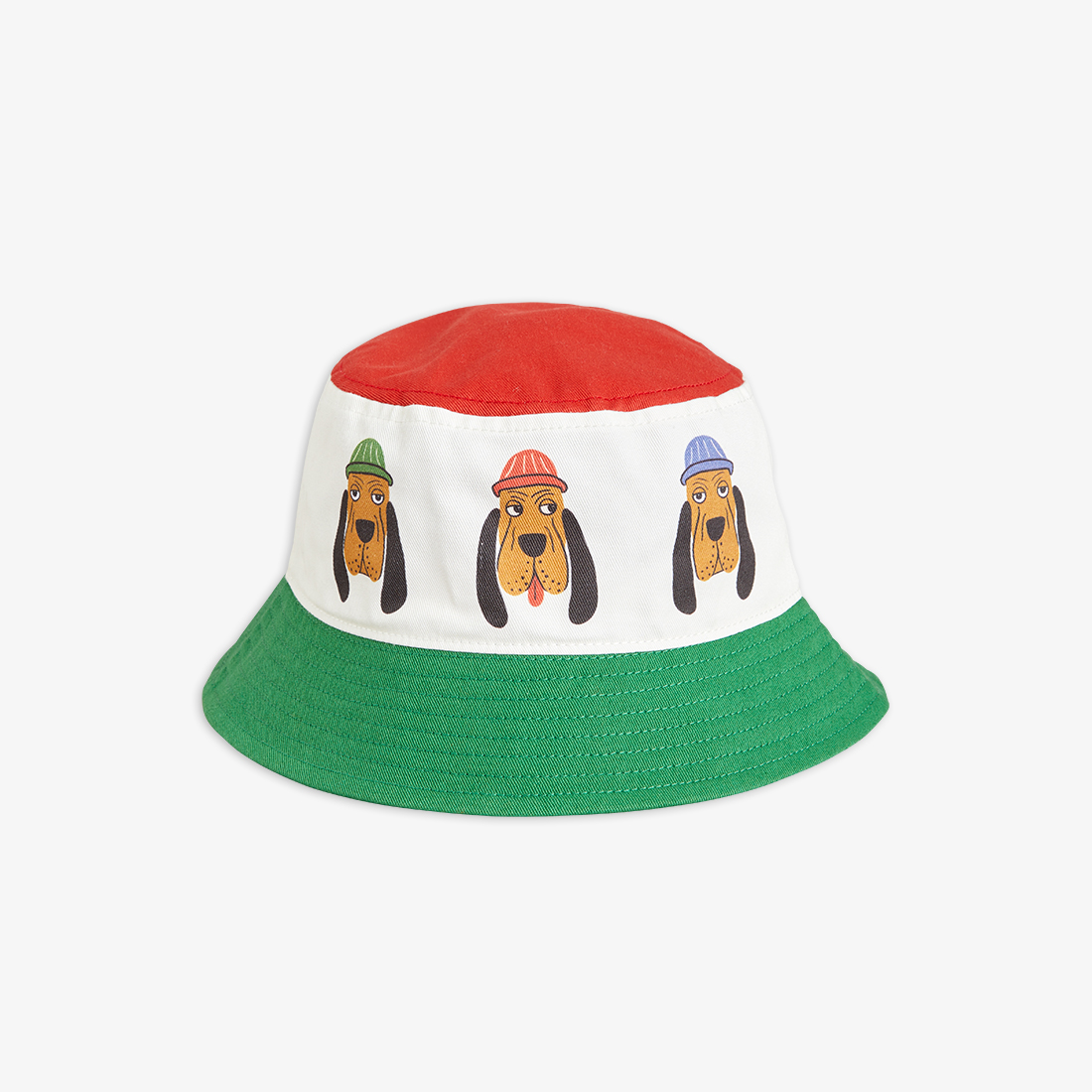 Bucket hat made from 100 % organic cotton decorated with three printed Bloodhound motifs.