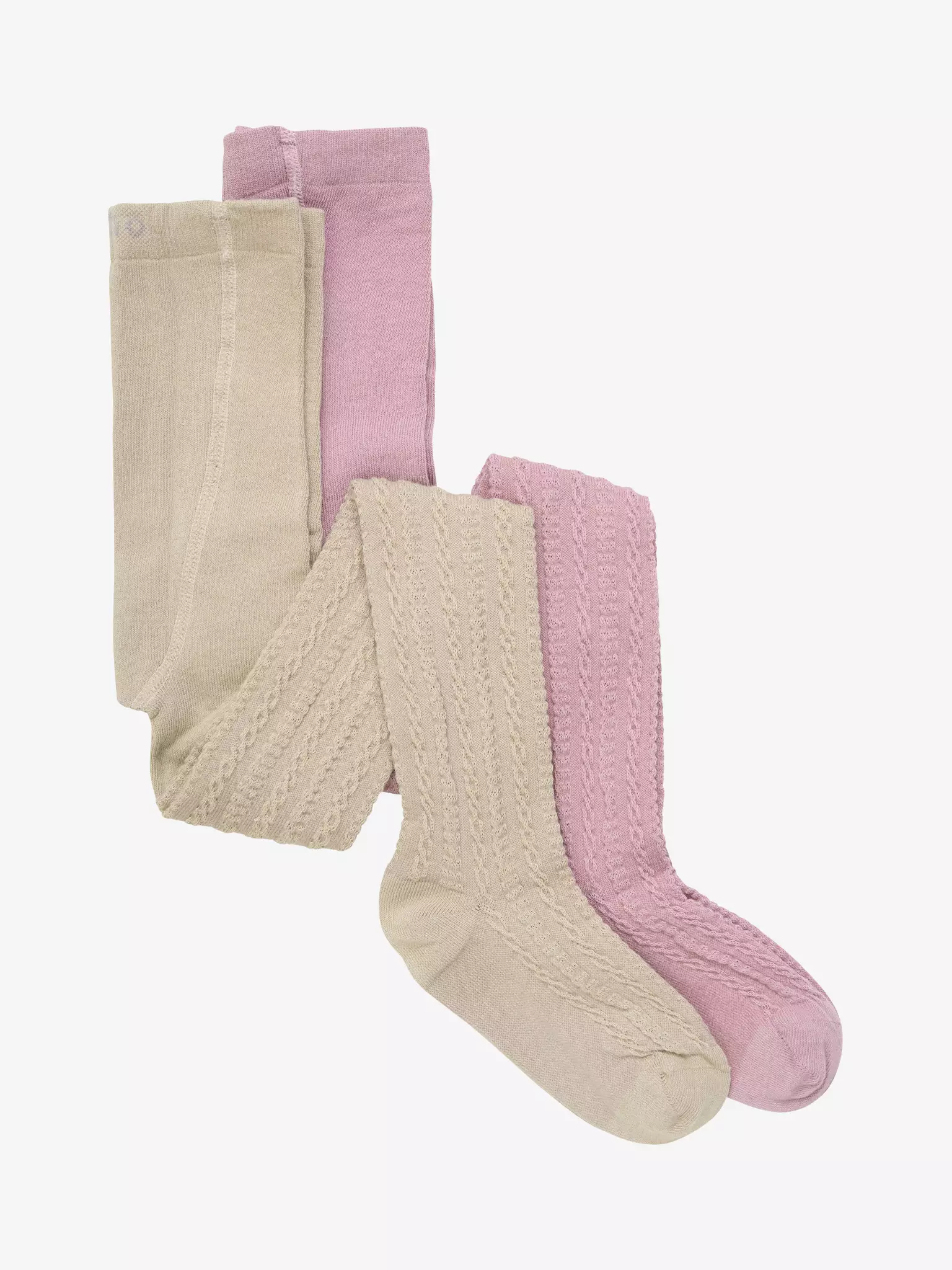 Kahdet Minymon kauniit pitsikuvioiset sukkahousut. 78% puuvillaa, 20% polyamidia, 2% elastaania