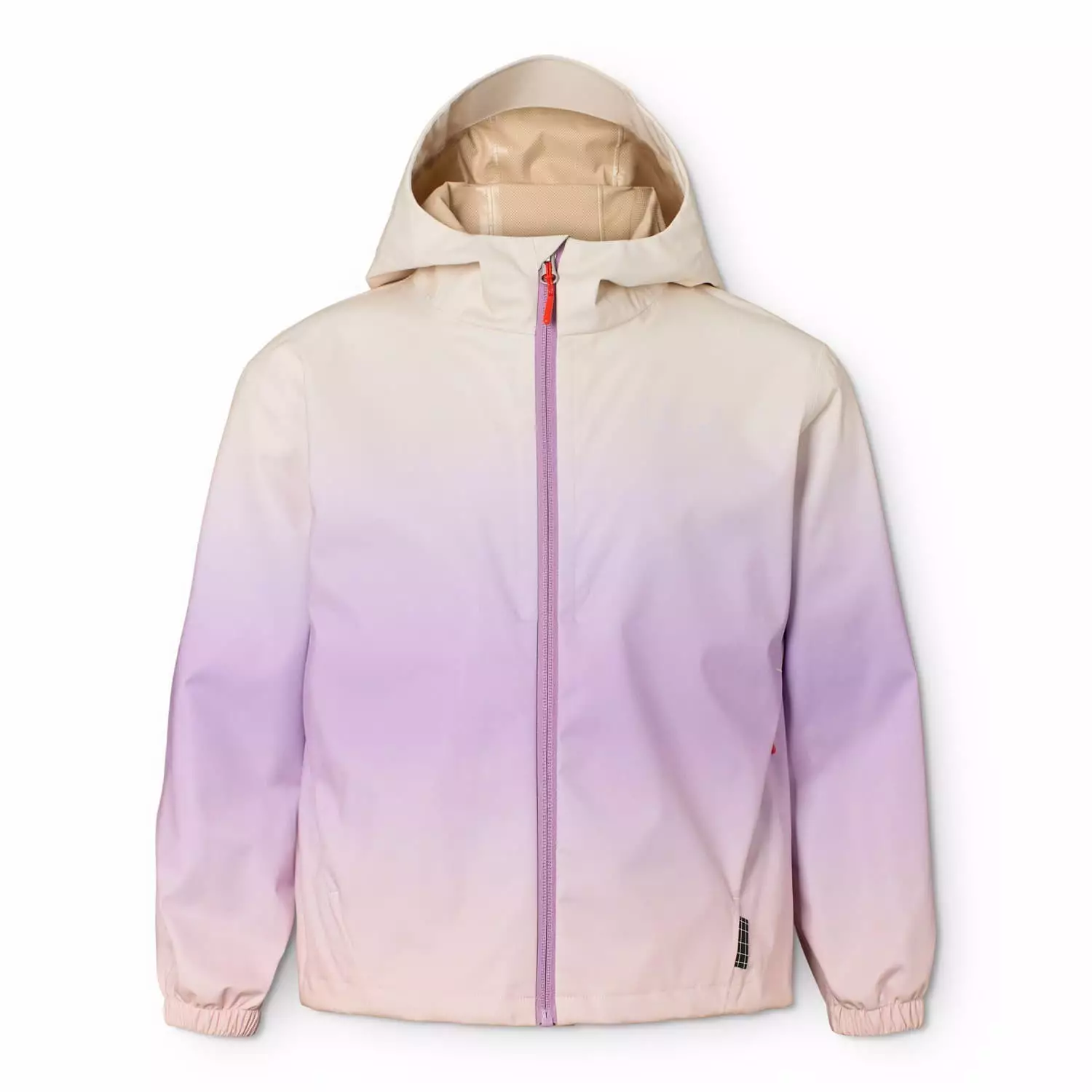 Molo lasten kaunis ja kevyt liukuvärjätty sateen- ja tuulenpitävä vuoriton kuoritakki. Edessä vetoketjutaskut ja helmassa kiristysnyöri.