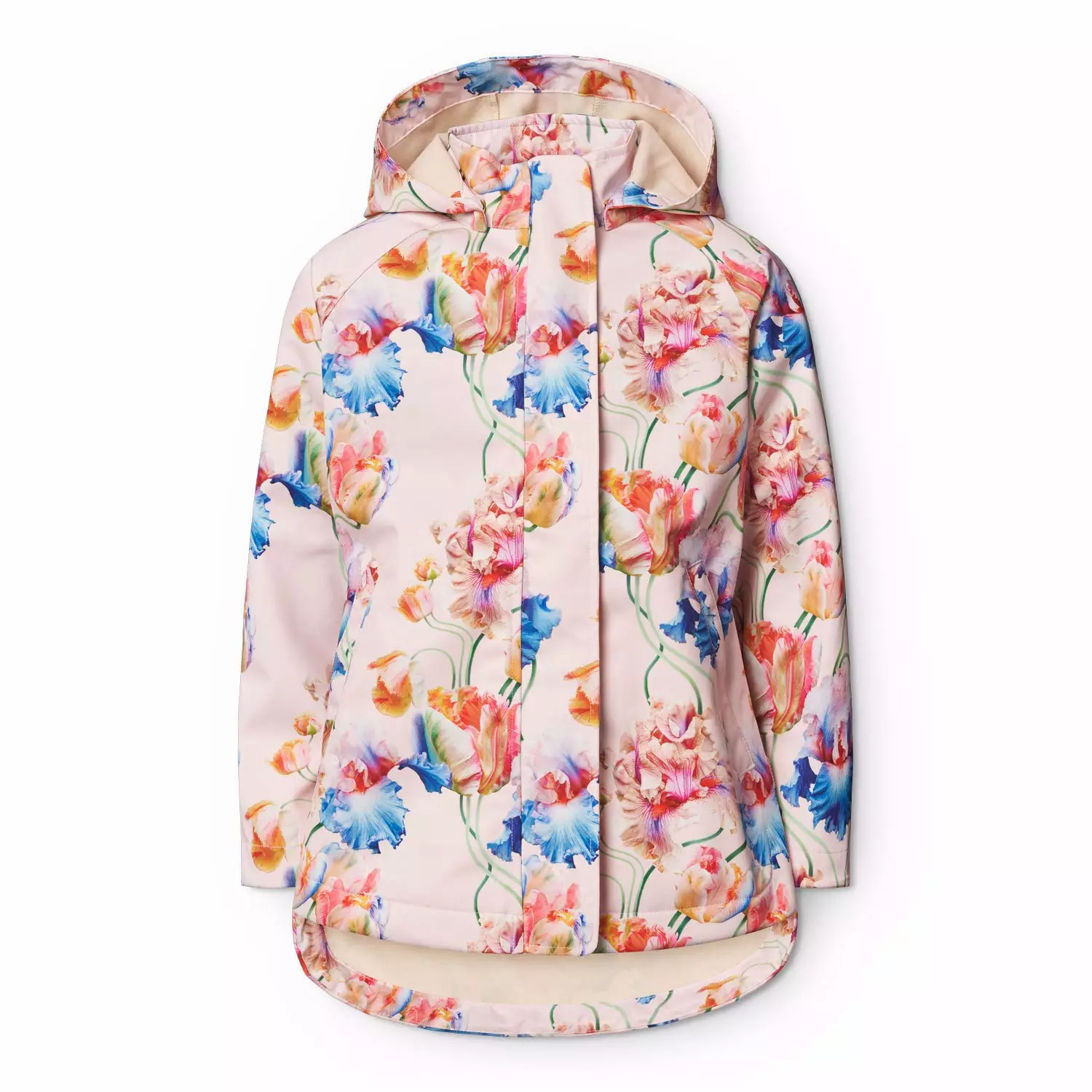Molo lasten softshelltakki, kukka-kuosilla. Materiaali: 50% kierrätetty polyesteri / 50% polyesteri.