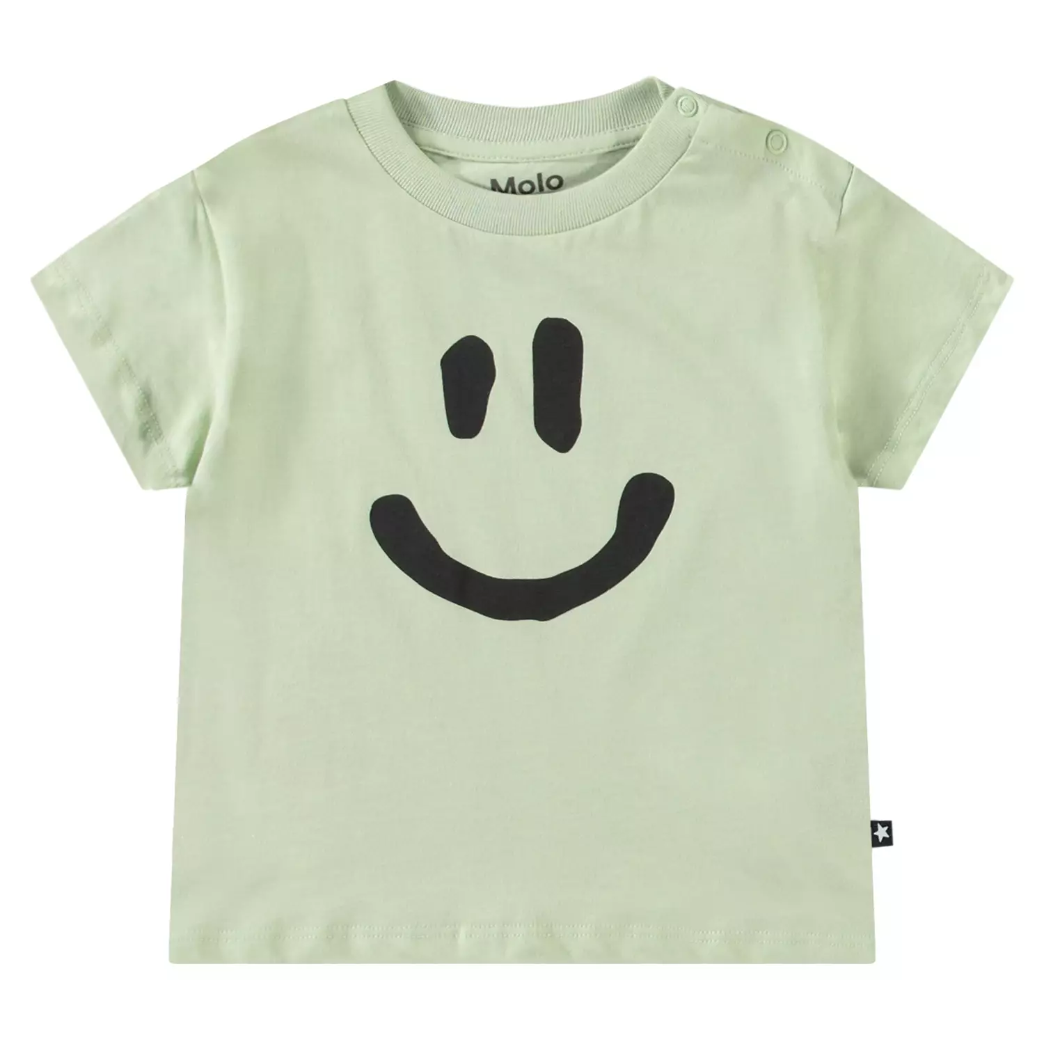 Molo vihreä t-paita hymynaamalla. Materiaali: 100% luomupuuvilla.