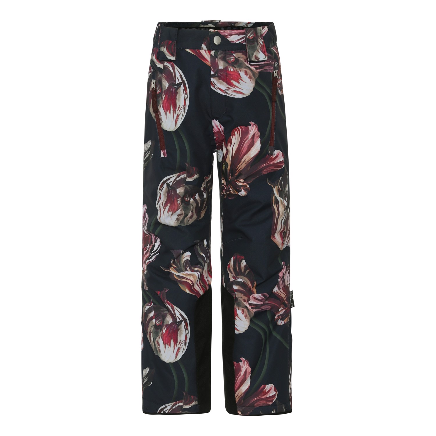 Jump Pro is a pair of functional, waterproof pull on trousers in a floral print. Jump Pro are particularly well suited as ski trousers because they are very durable. Because they are breathable and insulated, Jump Pro trousers are perfect for extremely cold days but also ordinary winter days. The high level of breathability helps regulate a child's body temperature so they do not become too cold or over heated. On warmer winter days, a child can wear the trousers with a thin under layer, but on extremely cold days, you can add an extra layer underneath. Jum