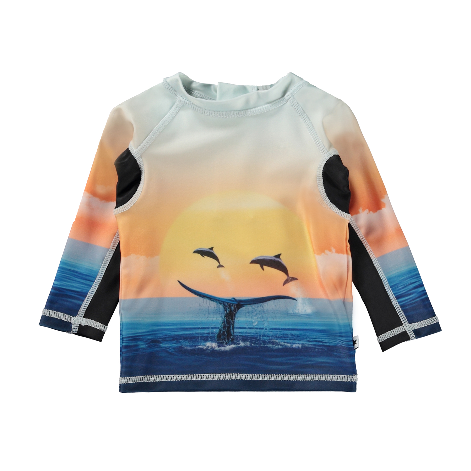 The rash guard has a practical zip closure on the back to make it easy to slip on and off.