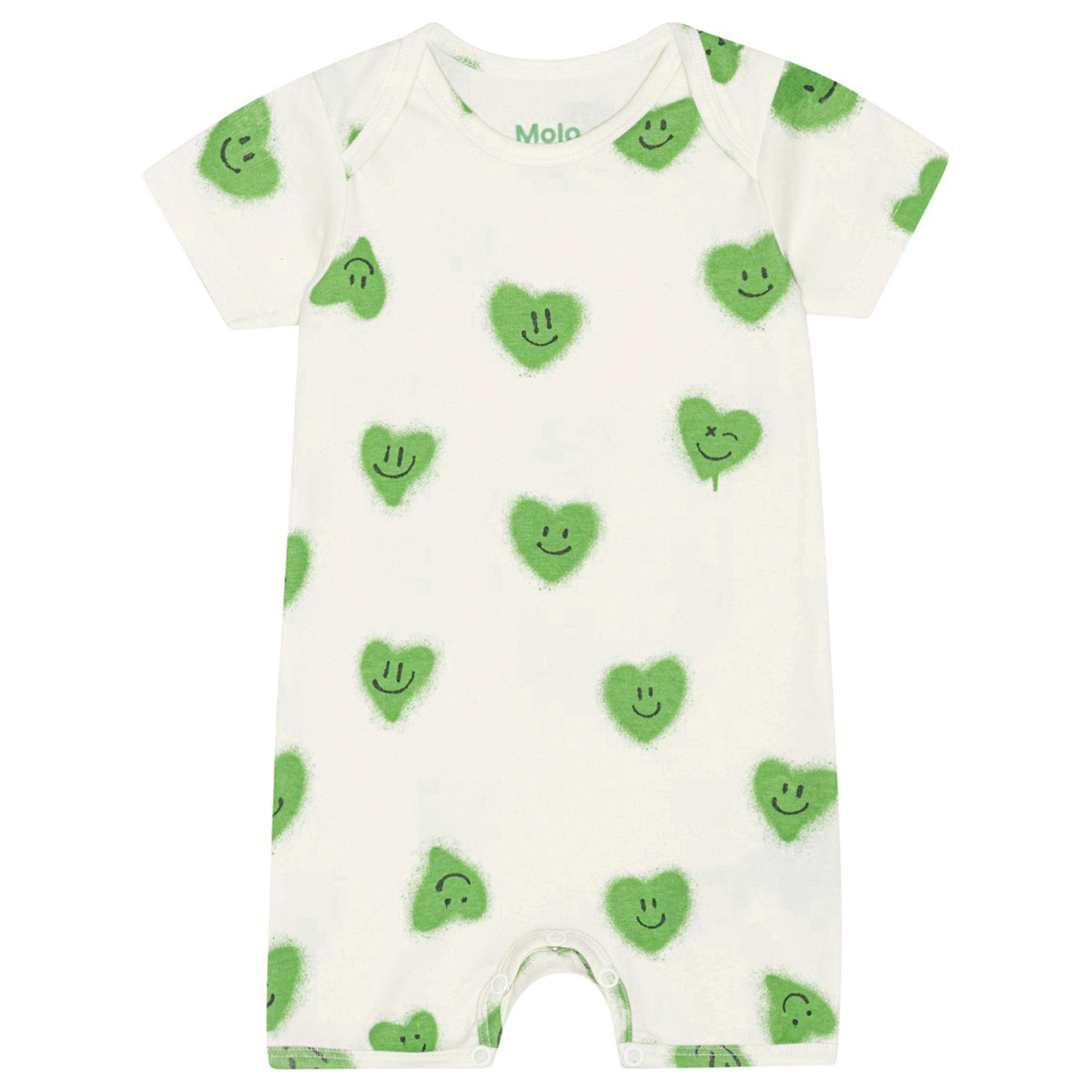 Ihanan vilpoisa ja kesäinen helleasu / shortsihaalari vauvalle. Hauska hymynaama / sydän -kuosi! 95% luomupuuvilla / 5% elastaani
