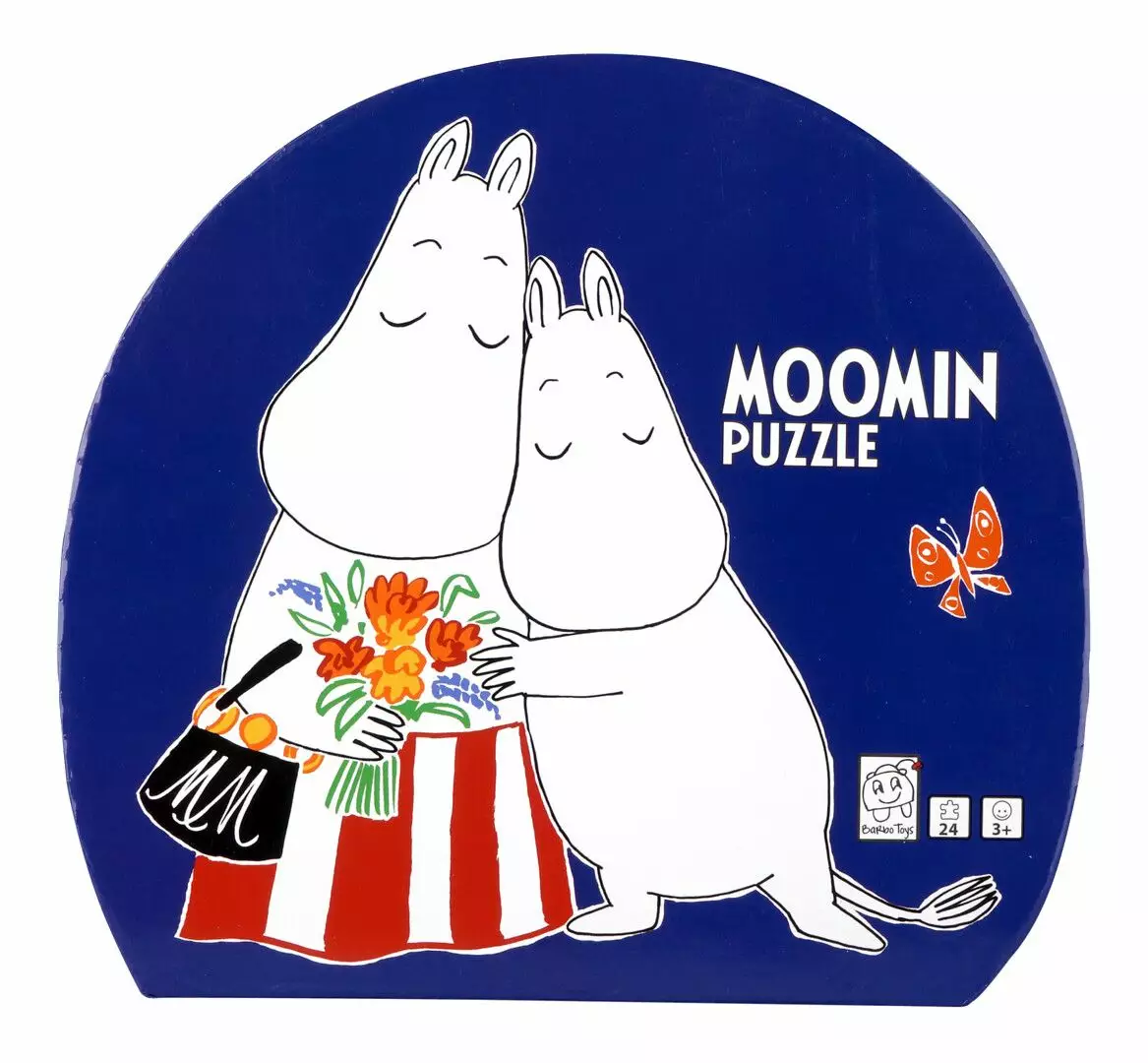 Muumi-aiheinen palapeli, jossa 24 palaa. Vahvaa kartonkia. Pakattu hauskaan muotolaatikkoon. Ikäsuositus: 3+.