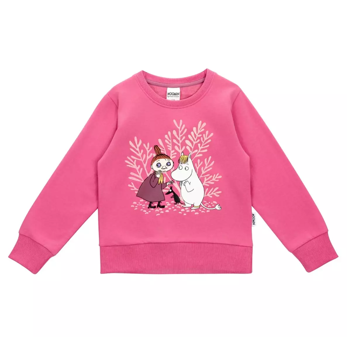 Kauniin roosa Muumi-mallistoomme kuuluva lasten pitkähihainen collegepaita, jossa on suora malli ja pehmeäksi harjattu sisäpuoli. Paidan vaalean roosalla pohjalla on herkän suloinen Kuiskutus-kuosi.