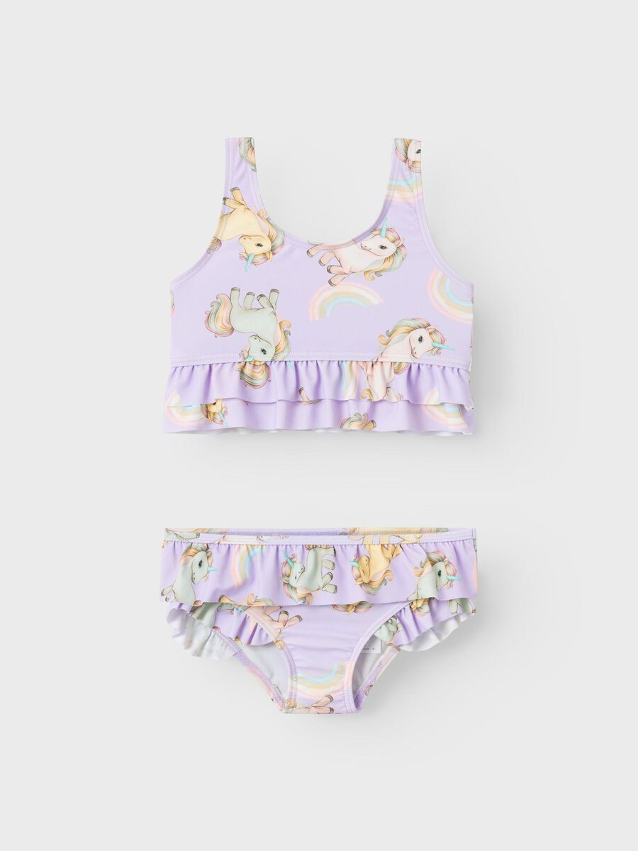 Name it lasten bikinisetti. Outer: 80% Polyamide, 20% Elastane; Lining: 100% Polyester