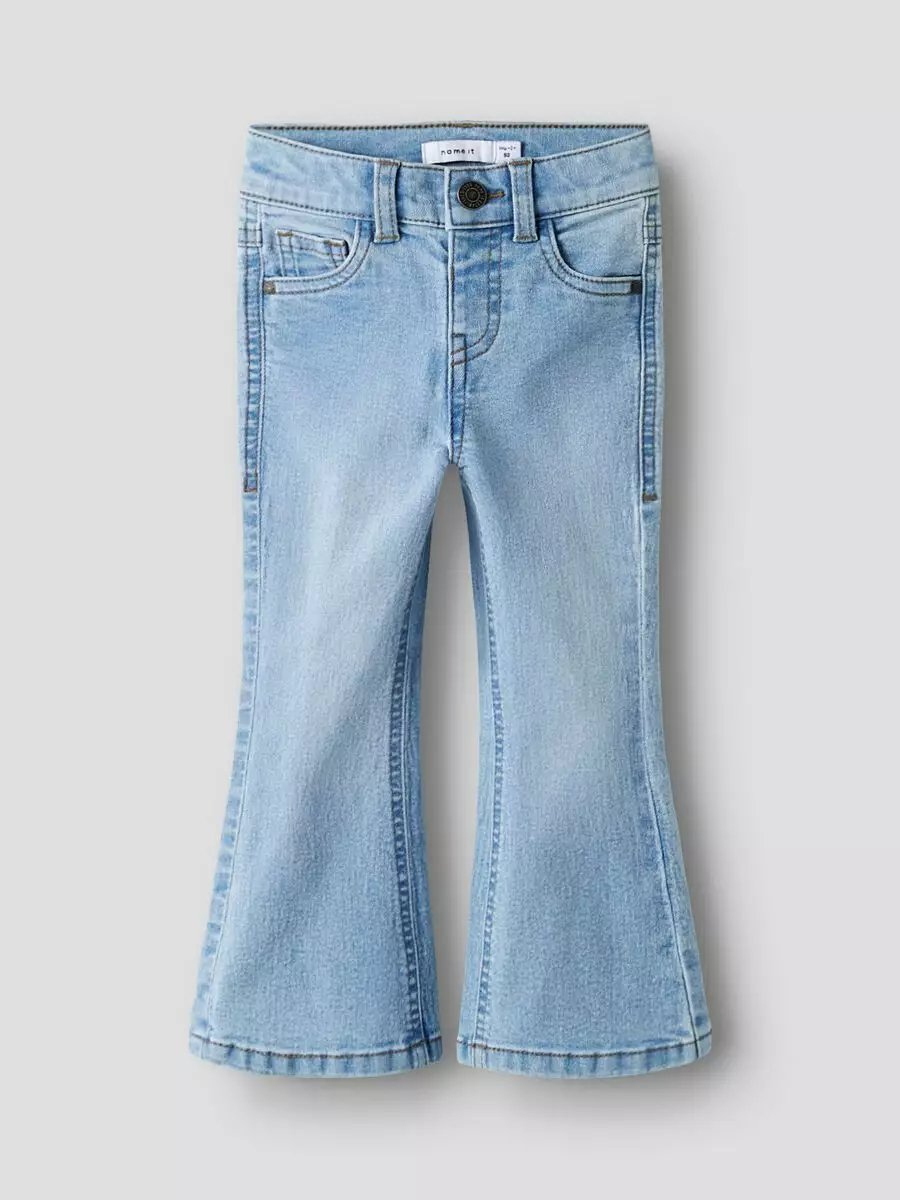 Name it lasten bootcut mallin farkut, värissä light blue denim. 78% Cotton, 21% Polyester - Recycled, 1% Elastane