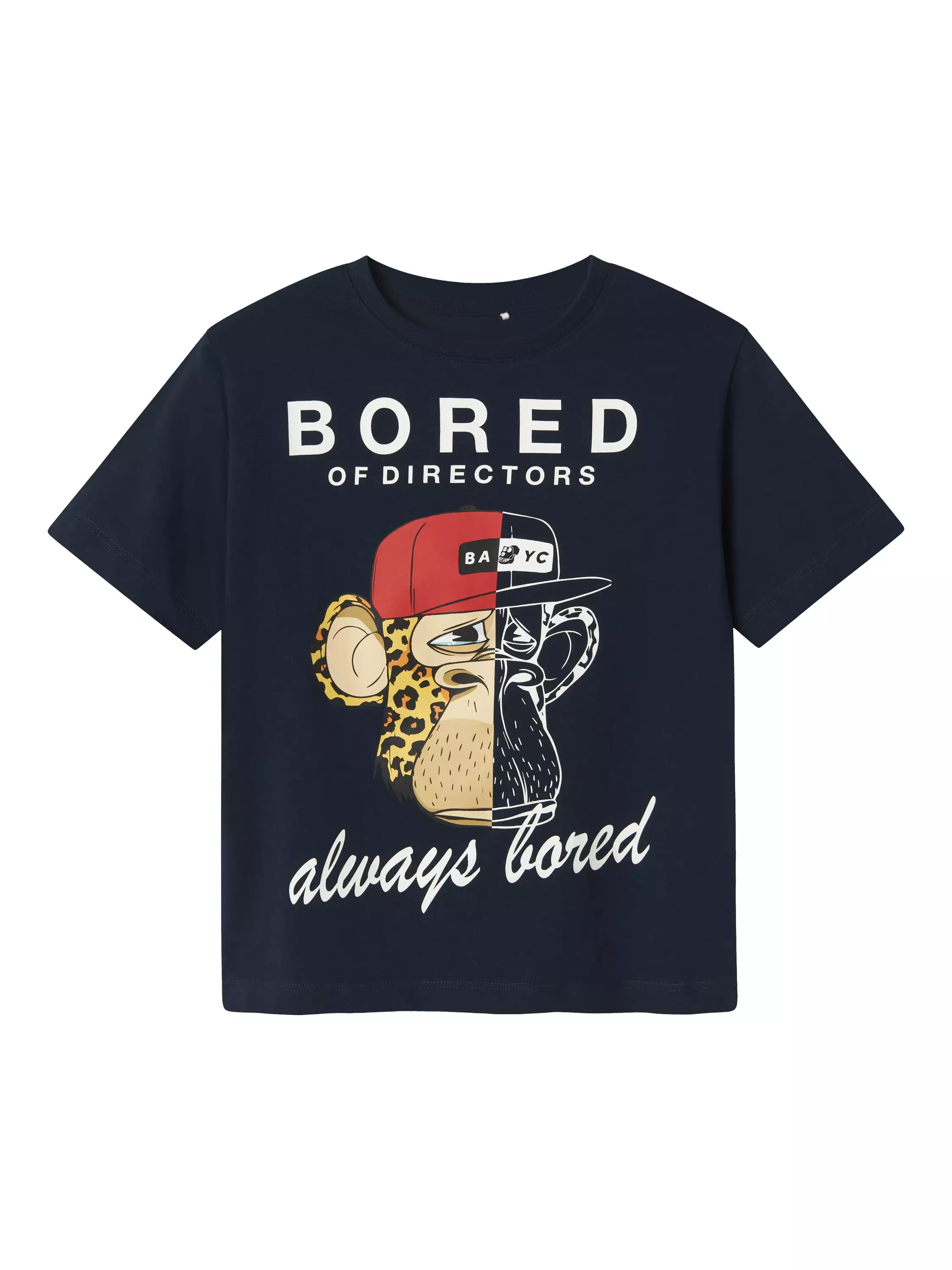 Name it lasten Bored kuosin T-paita. 50% Cotton - Organic, 45% Cotton, 5% Elastane